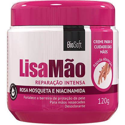 O Lisa Mão Rosa Mosqueta Bio Soft é um creme desenvolvido para proporcionar hidratação e reparação intensa das mãos, combatendo o ressecamento desde a primeira aplicação. Sua fórmula combina Óleo de Rosa Mosqueta, Niacinamida e Manteiga de Karité, ativos reconhecidos por sua ação nutritiva, regeneradora e hidratante. Essa combinação ajuda a fortalecer a barreira de proteção da pele, deixando as mãos mais macias, suaves e com aparência saudável. Com textura leve e rápida absorção, o creme não deixa sensação pegajosa e pode ser usado ao longo do dia, proporcionando conforto imediato. Além disso, possui ação desodorante, mantendo as mãos sempre cuidadas e perfumadas. O resultado são mãos hidratadas, protegidas e com toque sedoso, prontas para o dia a dia.
